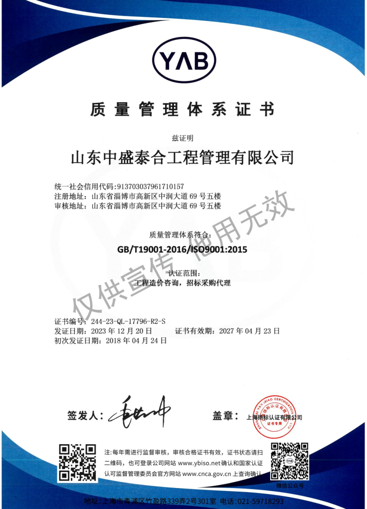 山東中盛泰合工程管理有限公司成立于2006年,經(jīng)過(guò)多年發(fā)展與積累已成為山東省及區(qū)域內(nèi)最具活力的工程造價(jià)專(zhuān)業(yè)咨詢(xún)機(jī)構(gòu)與綜合性建設(shè)項(xiàng)目管理咨詢(xún)機(jī)構(gòu)之一。公司是由國(guó)家住建部批準(zhǔn)的全國(guó)工程造價(jià)咨詢(xún)甲級(jí)資質(zhì)企業(yè),山東省住建廳核定的山東省工程造價(jià)咨詢(xún)A級(jí)資信企業(yè),中國(guó)建設(shè)工程造價(jià)管理協(xié)會(huì)會(huì)員單位,山東省工程建設(shè)標(biāo)準(zhǔn)造價(jià)協(xié)會(huì)理事單位、淄博市建設(shè)工程招標(biāo)投標(biāo)和標(biāo)準(zhǔn)造價(jià)協(xié)會(huì)副會(huì)長(zhǎng)單位、山東省全過(guò)程工程咨詢(xún)服務(wù)試點(diǎn)企業(yè)。公司已通過(guò)ISO9001國(guó)際質(zhì)量體系認(rèn)證、ISO14001國(guó)際環(huán)境管理體系認(rèn)證、ISO45001國(guó)際職業(yè)健康與安全管理體系認(rèn)證,多年連續(xù)獲評(píng)省市行業(yè)先進(jìn)單位、淄博市工程造價(jià)咨詢(xún)十佳企業(yè),造價(jià)咨詢(xún)成果優(yōu)秀企業(yè);公司為山東省施工全過(guò)程造價(jià)控制規(guī)則等行業(yè)標(biāo)準(zhǔn)規(guī)范編撰單位,省建筑工程消耗量定額學(xué)習(xí)匯編資料編制單位等……